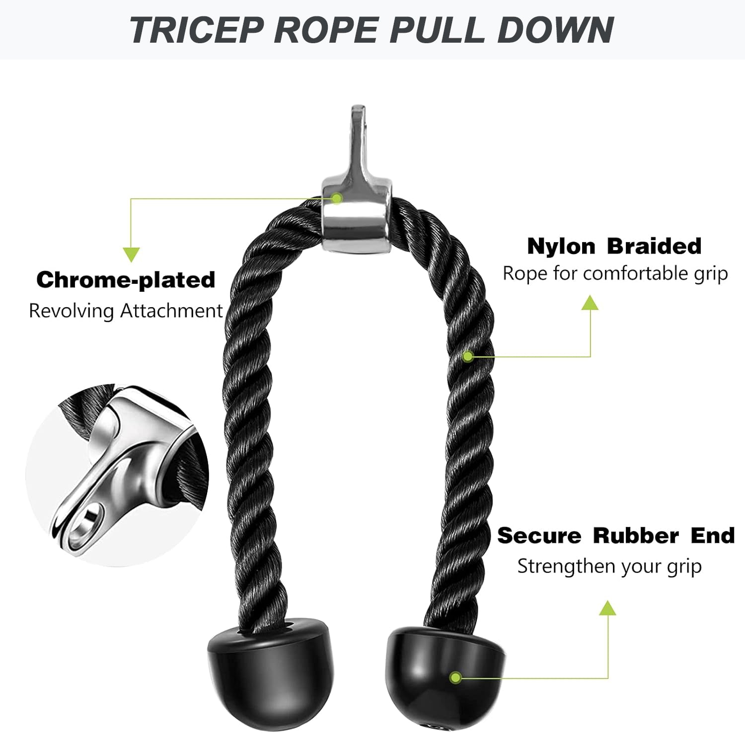 ✅ Great for: Triceps pushdowns, face pulls, rope curls, and more.