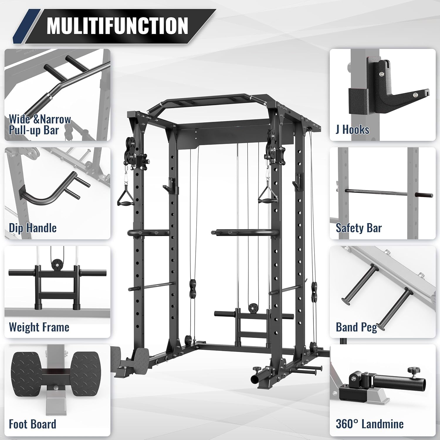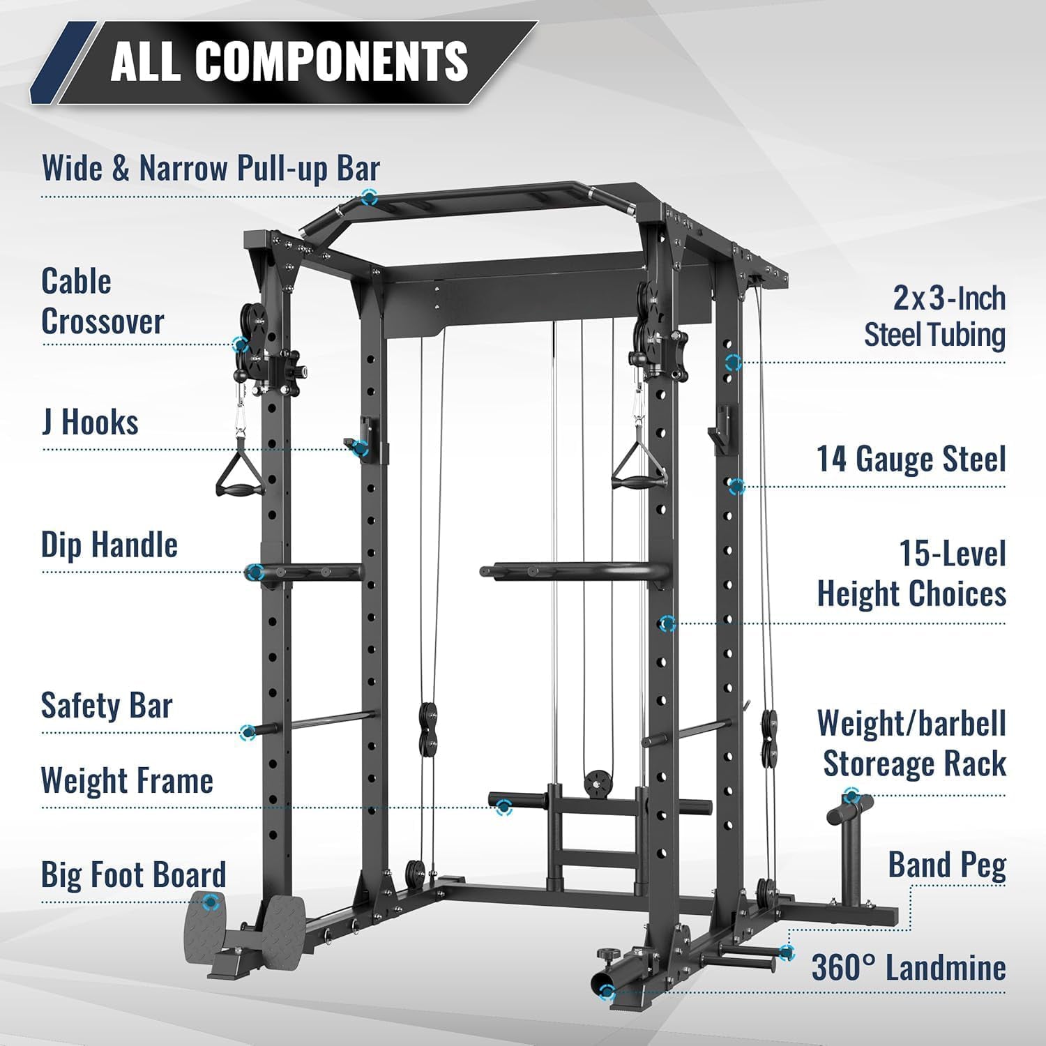 Features a durable aircraft-grade pulley system built for long-term use. Transition between exercises easily with low row and crossover functionality.